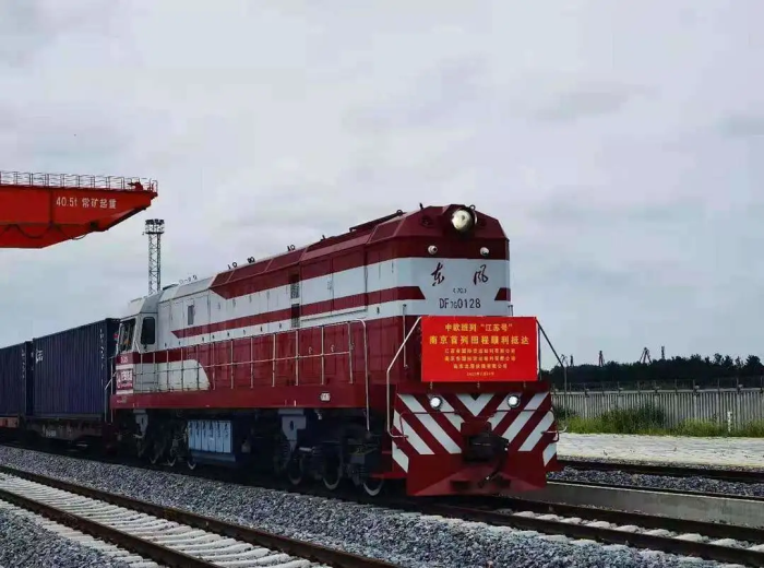 2021年7月24日上午,满载44节外贸进口货物的回程班列经满洲里过境、清关、检疫,安全抵达南京龙潭港区专用铁路装卸场站,这是中欧班列首次到达龙潭港。
