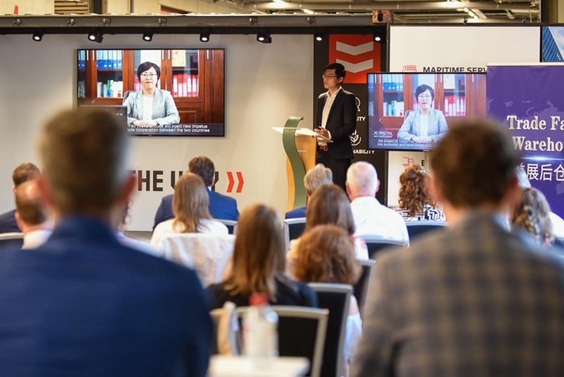 为深化中荷经贸往来,促进中欧贸易发展,当地时间6月22日下午,由省班列公司、荷兰CMC公司共同举办的中荷贸易促进活动暨江苏-北布拉邦“前展后仓”项目启动仪式在荷兰蒂尔堡举行,这是中荷建立大使级外交关系50周年、江苏与北布拉邦省结好28周年的最新成果,也是全国首个依托中欧班列平台打造的“前展后仓”双向贸易促进项目,将进一步推动“江苏造”商品走进荷兰,荷兰优质产品引入国内,培育双向贸易新模式。中国驻荷兰大使馆经商参赞张国胜、荷兰蒂尔堡市市长Theo Weterings、荷兰北布拉邦省经济发展署副署长Eelko Brinkhoff、全荷兰中资企业协会秘书长潘治现场出席活动,江苏省商务厅副厅长孙津以视频形式致辞,荷兰企业、在荷中资及外资企业代表约100人参加活动。