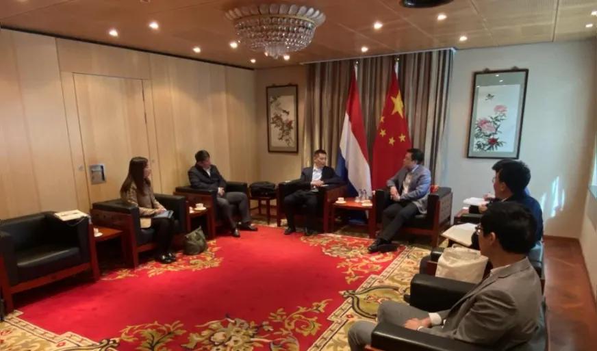 在荷兰期间,考察团一行先后拜访中国驻荷兰大使馆经商处、中资在荷商协会、京东欧洲公司、菜鸟欧洲公司及BTT多式联运集团,并考察蒂尔堡场站。在中国驻荷兰大使馆经商处,金远参赞充分肯定了中欧班列在促进中欧经贸往来中的积极作用,对江苏班列进一步联通荷兰、深耕欧洲寄予期待。随后,考察团还拜会了全荷兰中资企业协会、欧洲储能协会,与相关负责同志围绕进一步强化中欧班列通道作用、发挥“前展后仓”功能、更好服务中荷经贸往来、促进中欧能源产业合作进行深入交流。在京东欧洲公司、菜鸟欧洲公司,考察团围绕推进中欧班列运输、推动跨境电商发展展开深入洽谈、达成合作意向。在BTT多式联运集团,双方就远欧线路开行进行深入探讨。