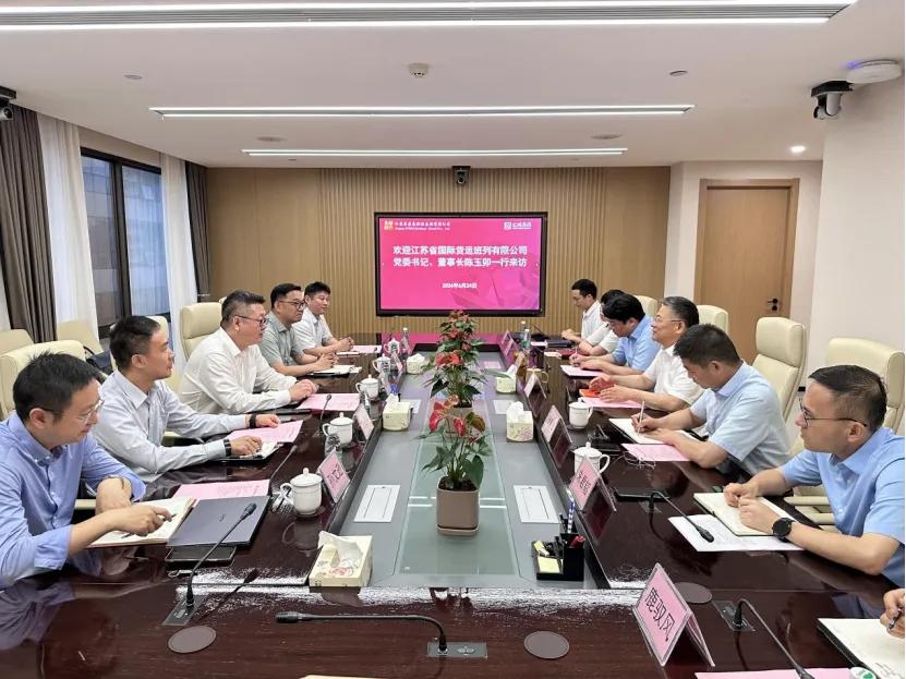 6月24日下午,省班列公司党委书记、董事长陈玉卯,总经理、党委副书记夏晋赴省粮油公司拜访,主动对接运贸融合工作,靠前服务苏豪控股集团体系内成员企业运输需求,推动运贸一体化发展。汇鸿集团党委委员、食品生鲜事业部总监、省粮油公司董事长季欣热情接待。