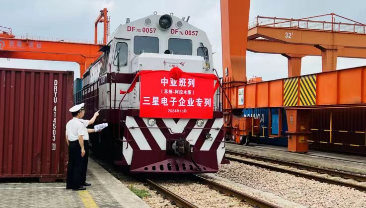国庆假期首日,一列满载着苏州三星电子高端家电的中亚班列从江苏(苏州)国际铁路物流中心驶出,发往阿拉木图。这是国庆期间苏州三星电子企业专列开行的首趟列车,预计国庆假期共将发运3列,货值超3000万元人民币。