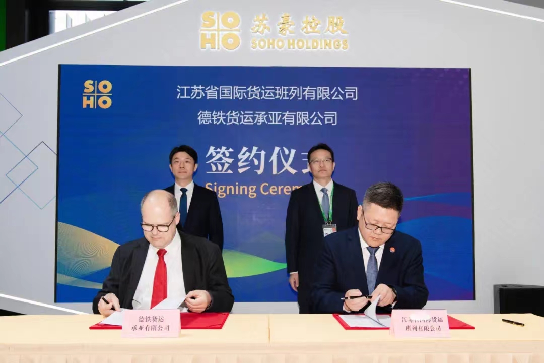 此次“进博会”是全方位展示全省班列综合物流保供能力、促进运贸融合服务地方经济、宣传江苏班列品牌扩大苏豪控股集团对外影响力的重要契机。作为苏豪控股集团参展单位中唯一从事服务贸易的物流企业,省班列公司先后与德铁承亚有限公司、江苏省对外经贸股份有限公司、哈萨克斯坦KOMEK BIDAI LLP有限责任公司、广西供应链服务集团有限公司、新加坡Global DTC.及南京智捷物流科技有限公司等现场签署战略合作协议。中国银行江苏省分行行长刘小宇,苏豪控股集团副总裁、党委委员丁海,苏豪控股集团总会计师、党委委员周洪溶,苏豪控股集团副总裁、党委委员晋永甫,省交通运输厅运输管理局副局长蔡健,南京市雨花台区副区长刘峰,苏豪控股集团外部董事,公司党委书记、董事长陈玉卯,公司党委副书记、总经理夏晋等分别来到位于服务贸易展区的8.2馆巡展并见证签约仪式。