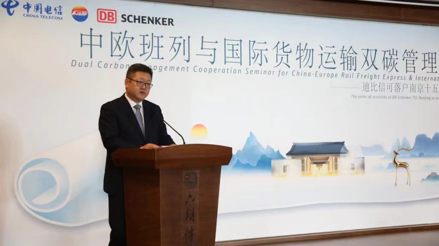 闵一峰代表玄武区对活动的成功举办表示热烈祝贺。他指出,玄武区作为南京的中心城区,山水城林荟萃、人文底蕴深厚,历史上便是丝绸之路发展延伸的关键节点,搭建起了连通海外、横跨东西的桥梁。期待以搭建中欧班列双碳服务平台,助力外贸企业绿色可持续发展。