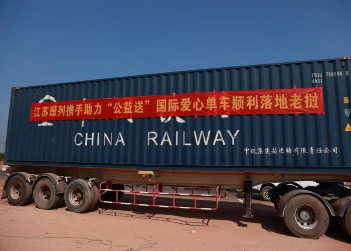 江苏班列供应链公司始终牢记初心使命,让钢轨传递温情,在物流链上书写着责任与担当。2024年,公司全程护航一列装载着1000辆爱心共享单车的特殊班列,精准将其配送至老挝万象、琅勃拉邦的10所中小学校,直接惠及5000名师生,此举荣获老挝教育部致谢函。在深度参与中老民生工程方面,公司高效运输多所援建中学的建材与教学物资。截至目前,已累计运输800吨建材与教学物资,圆满完成老挝6所援建中学物流保障任务,其中沙耶武里中学项目,通过精准物流缩短工期15天,用实际行动筑造友谊课堂。