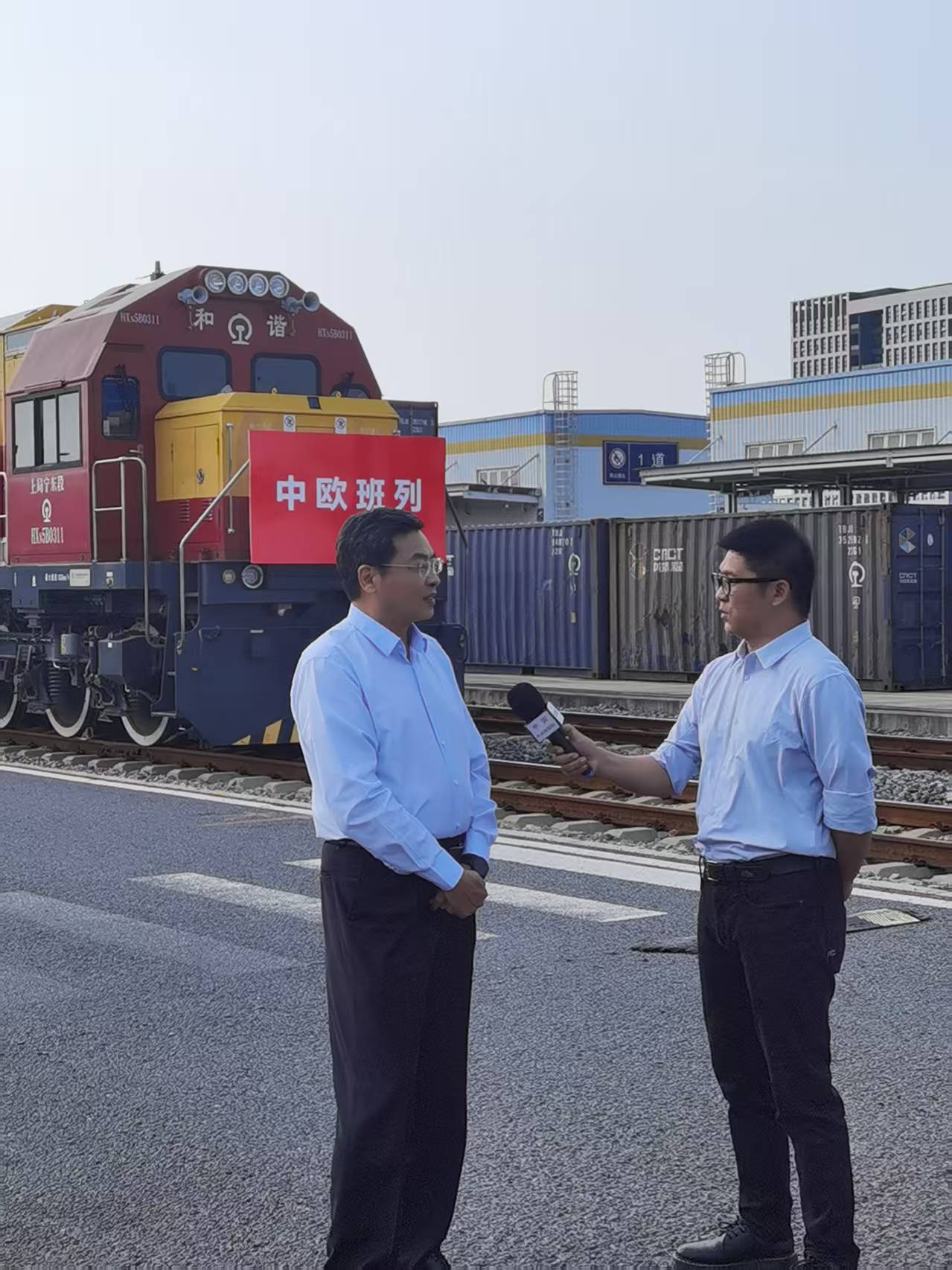 2023年9月,首届中欧班列国际合作论坛在江苏召开,省班列公司参加并接受采访。