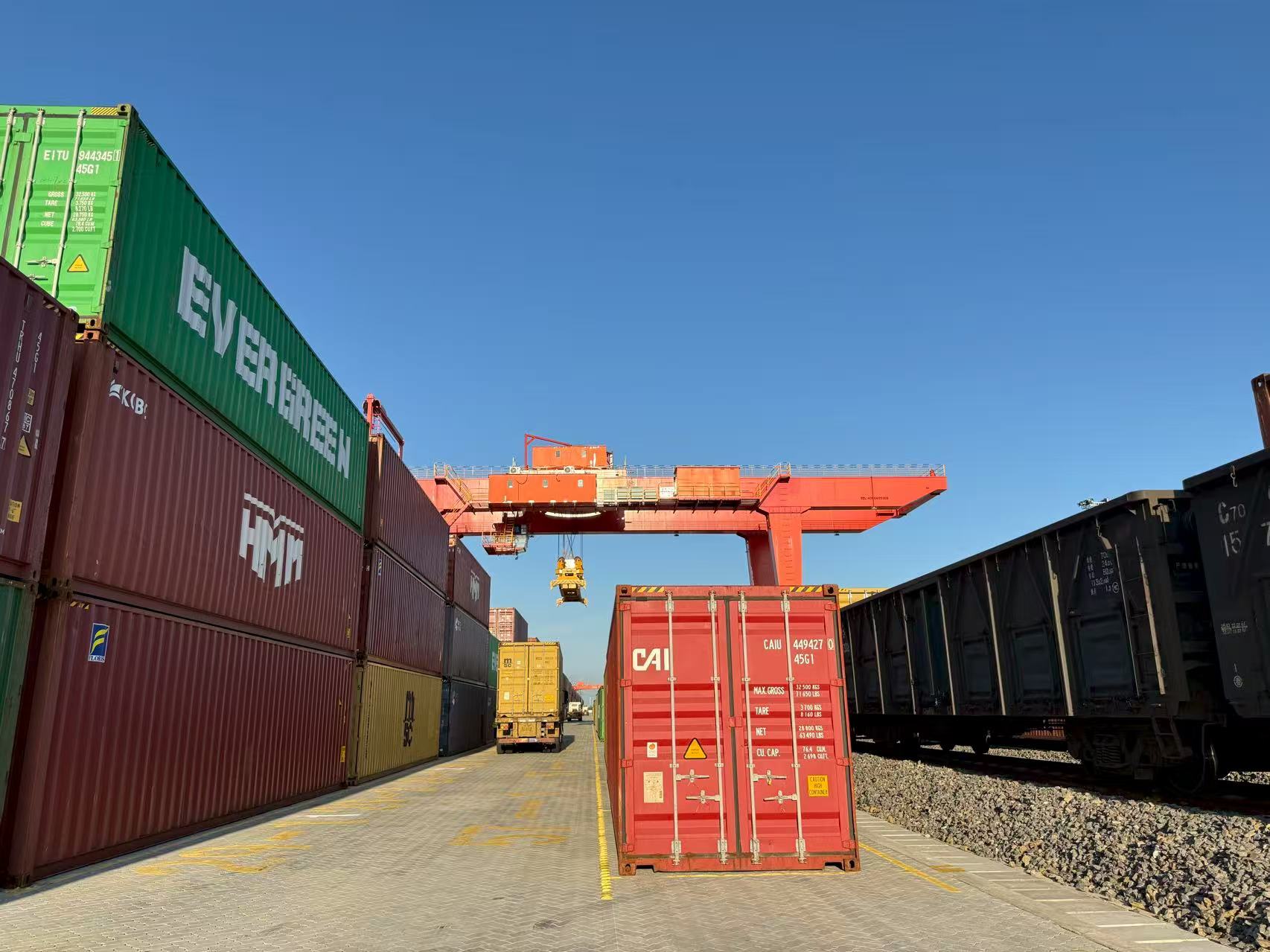 8月,班列准点开行,货场繁忙有序