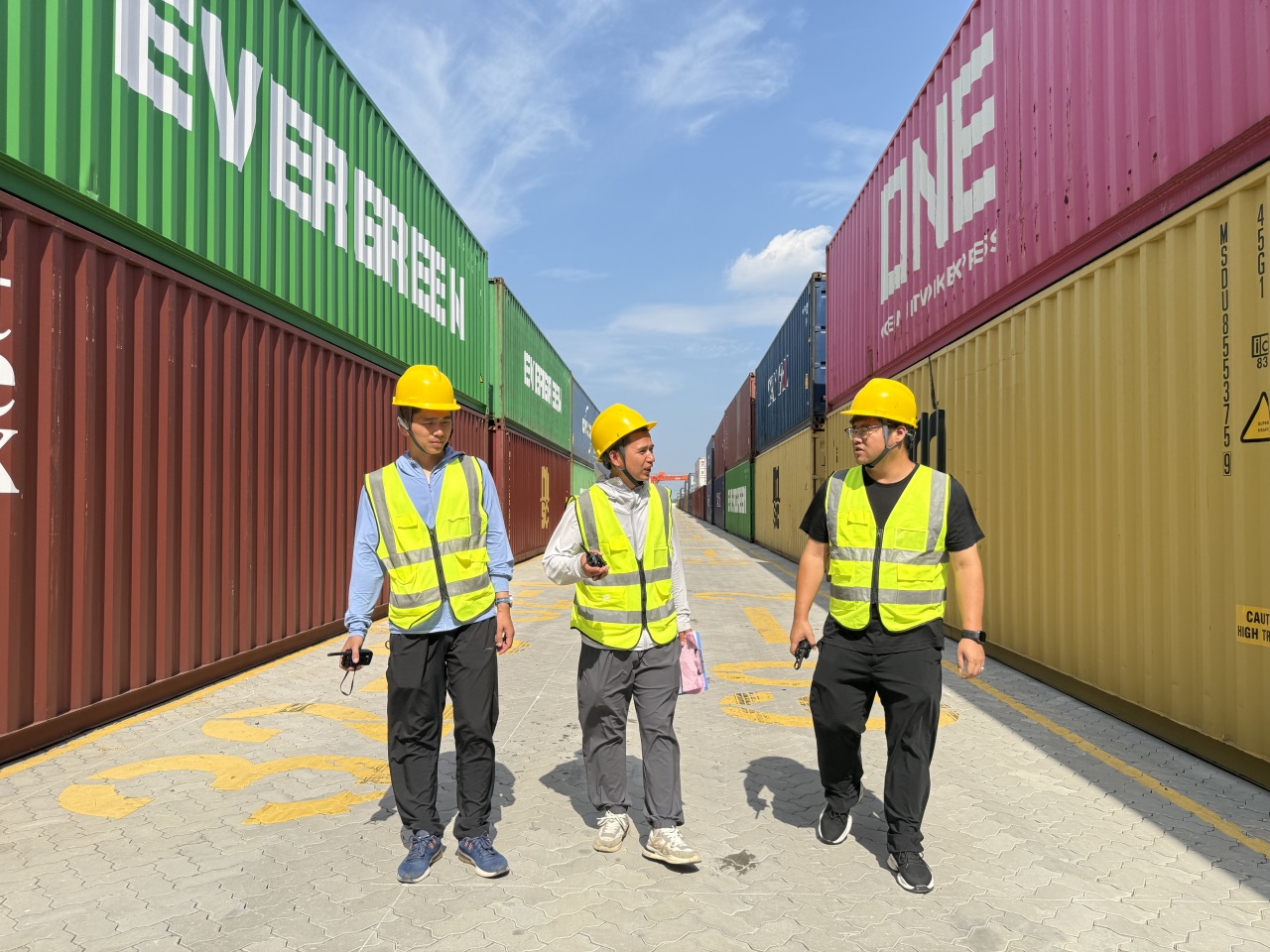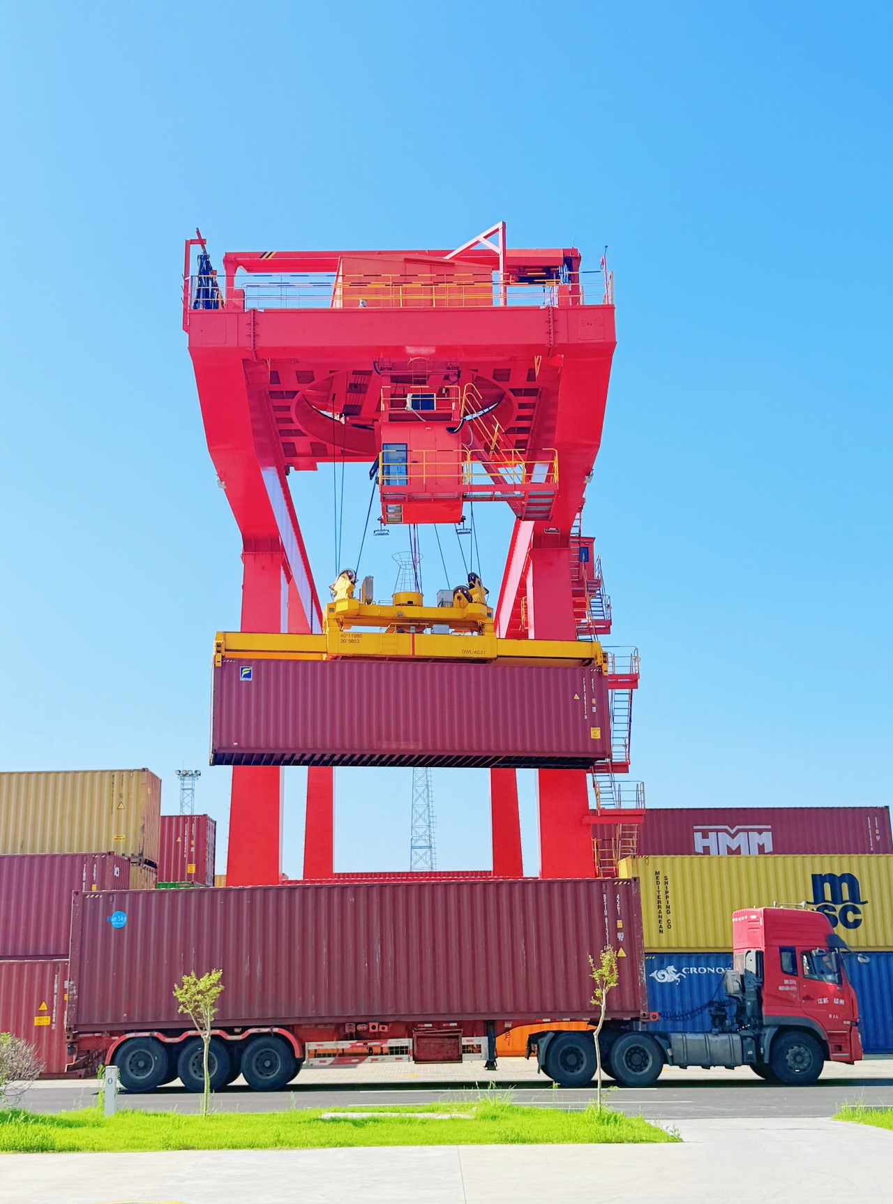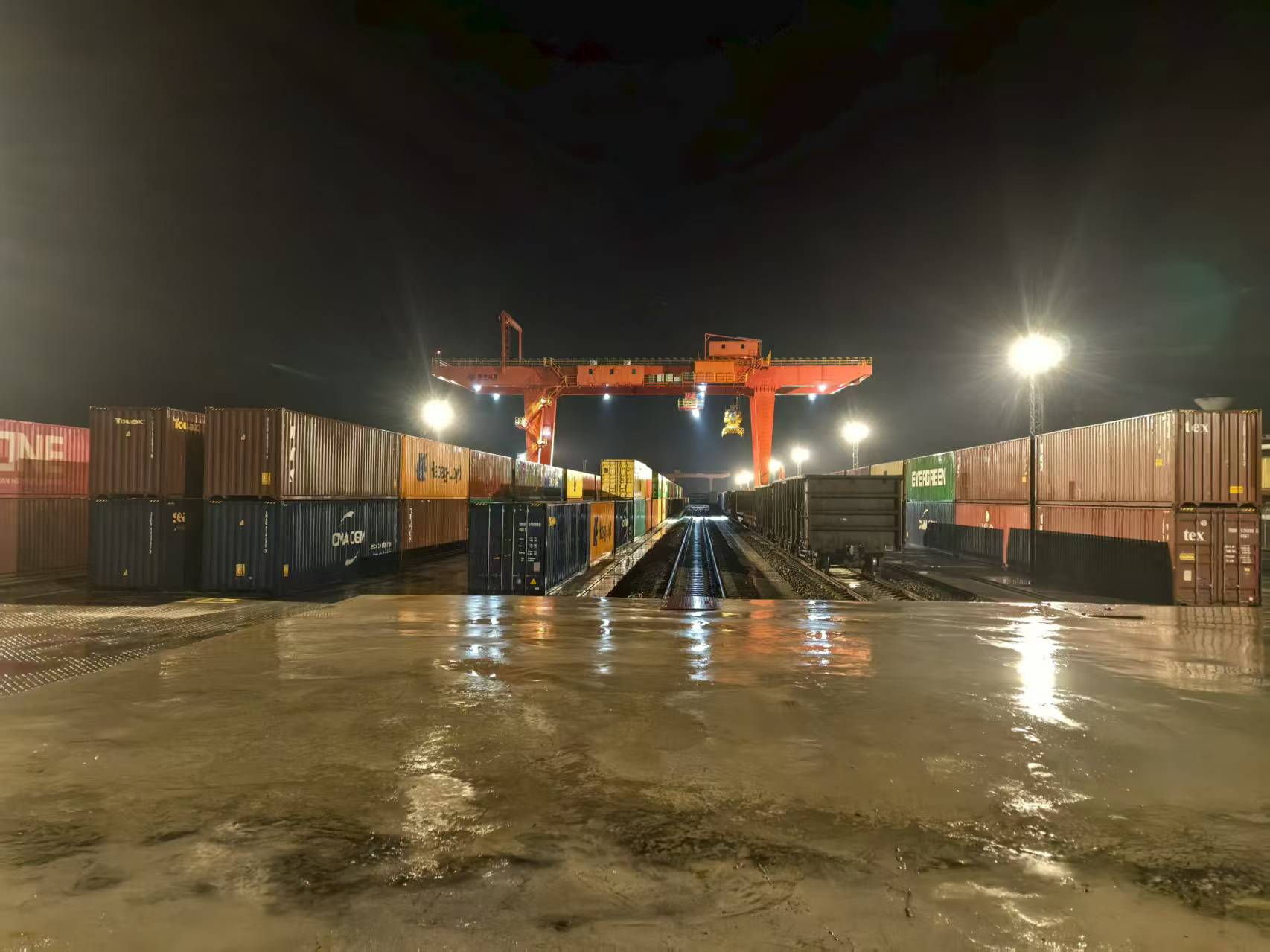 2025年8月,江都物流基地。一场暴雨刚歇,夜幕笼罩下的集装箱堆场反射着探照灯的光芒,将江都场站映得通亮。门吊轰鸣运转,有条不紊地执行着装箱作业。