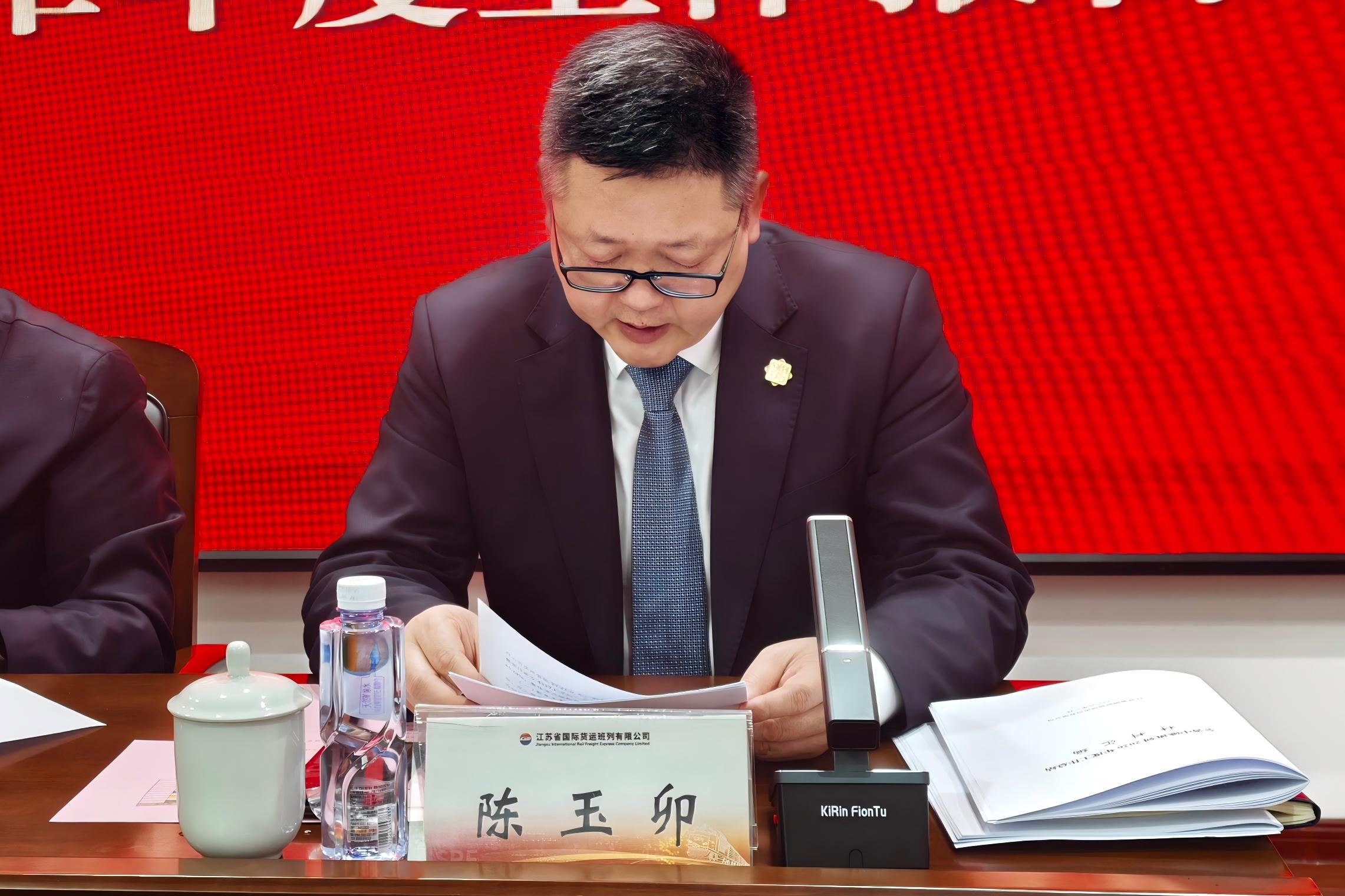 陈玉卯作题为《守正创新 稳中求进 提质增效 扎实推进江苏班列“十五五”高质量发展良好开局》的工作报告。全面回顾2025年全省班列工作开展情况与取得的成效。他强调,2026年是“十五五”规划开局之年,也是省班列公司“三个转型”发展之年,要坚持“守正创新、稳中求进、提质增效”工作总基调,加快构建现代物流体系,聚焦发展和效益,重点做好“六个强化”:要强化党建引领,加强党的全面领导,推进全面从严治党,深化党建业务相融合。要强化全省统筹,加强资源和管理统筹,推进运营模式统一,形成管理运营合力。要强化降本增效,提升资金使用效能,深挖班列全链条服务价值,实现增收创效。要强化服务提升,打造优质班列产品,完善境外网络布局,大力发展多式联运。要强化专业管理,深化营销、财务、客户管理,推动部门深度融合,加强科技创新发展。要强化对外沟通,争取更多政策支持,学习先进经验,不断提升运营质效。