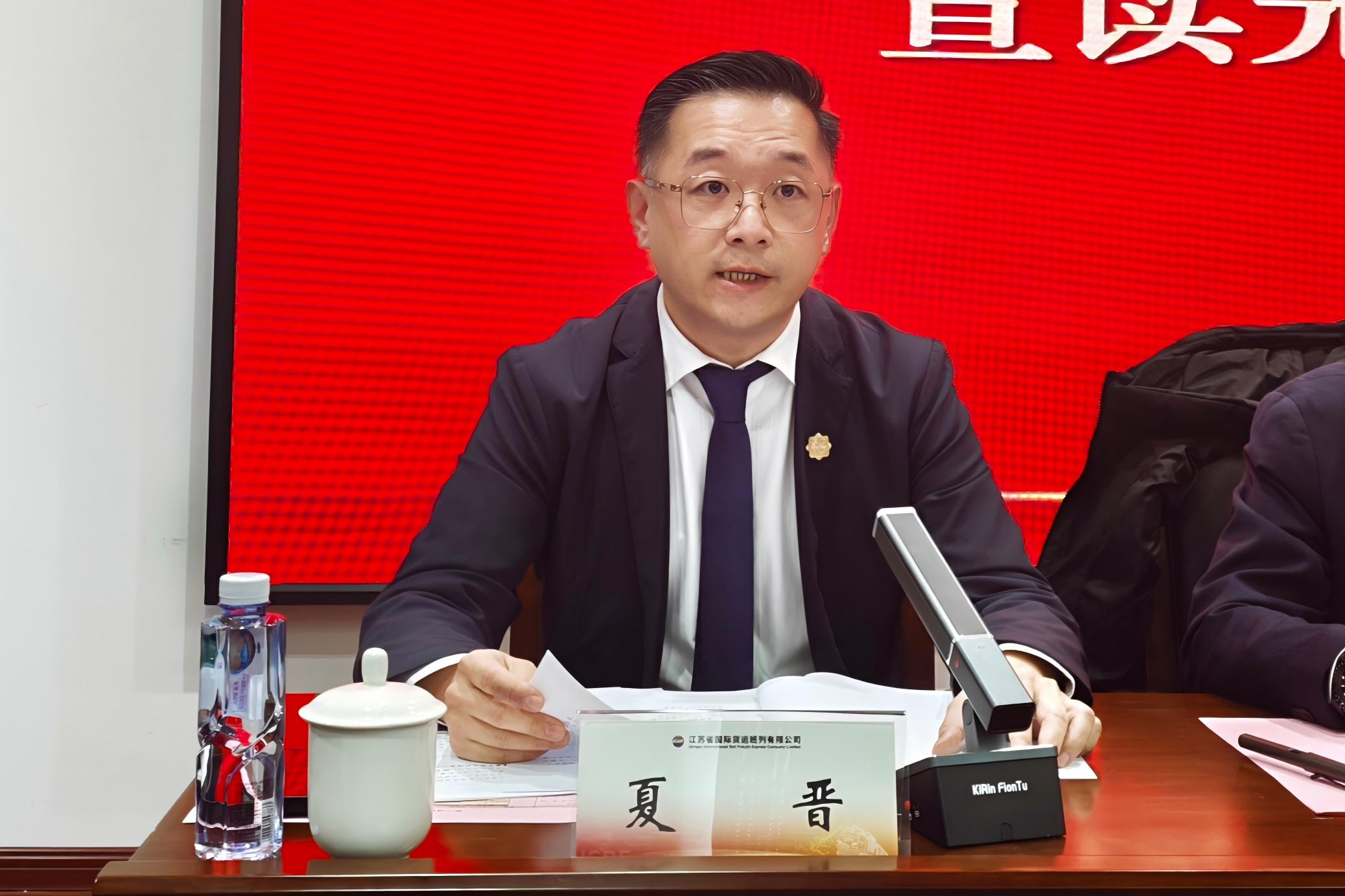 夏晋传达苏豪控股集团2026年度工作会议精神,并结合2026年经营工作进行会议小结。他强调,全省班列要以马不停蹄的脚步开创生产经营新局面,持续优化开行计划与资源配置,确保平稳均衡有序开好全年班列。聚力价值创造,通过深化全省统筹进一步延展供应链产业链,推动班列运营专业化市场化。大力推进运贸融合、多式联运发展,借助中国—中亚贸易畅通合作平台做深做优与集团贸易板块协同合作,拓展涉铁多式联运产品服务。加快数字班列建设,搭建外综服平台,打造江苏班列新质生产力。深化“闭环管理”和“一企一策”,强化督查问效,统筹好发展和安全。