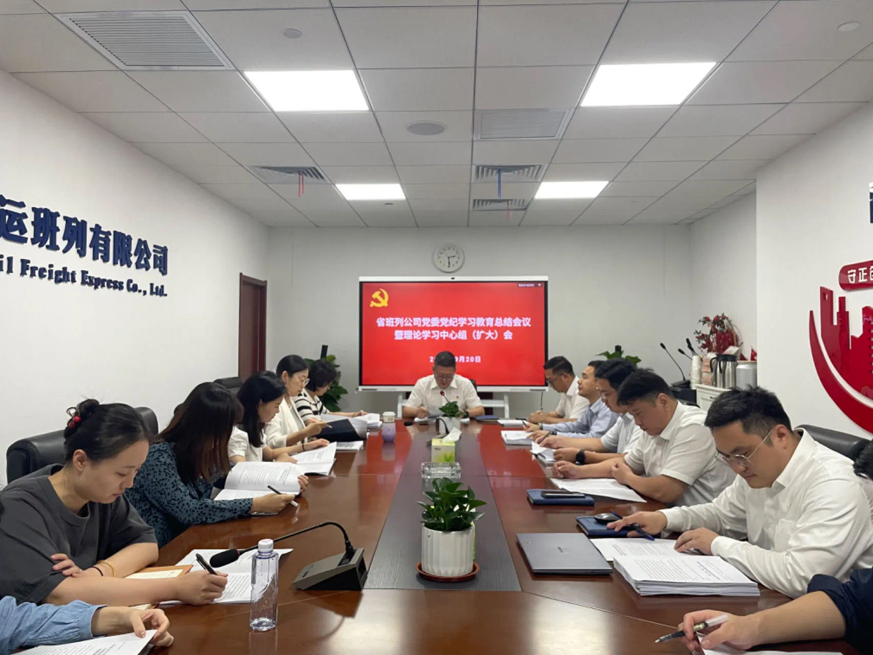 9月20日下午,省班列公司召开党纪学习教育总结会暨党委理论学习中心组(扩大)会议,深入学习贯彻习近平总书记关于党纪学习教育的重要指示精神,传达学习省委党的建设工作领导小组会议精神和苏豪控股集团党纪学习教育总结会暨党委理论学习中心组(扩大)会议精神,全面总结公司党纪学习教育工作,研究部署巩固深化党纪学习教育成果工作,推动党的纪律教育常态化长效化。公司党委书记、董事长陈玉卯主持会议并讲话,党委副书记、总经理夏晋传达相关会议精神。