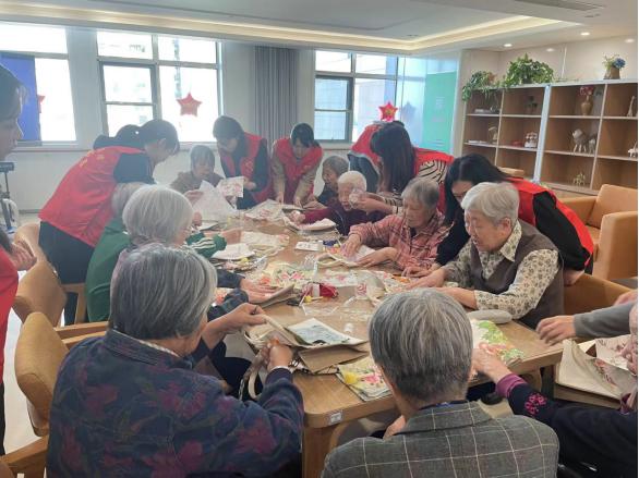 福利院内,大家与老人亲切交谈,关心老人们的日常生活和身体状况,叮嘱他们在季节变化时要注意身体保暖、饮食卫生和行动安全,提前祝愿老人们节日快乐,并为老人们送上了水果、牛奶等慰问品。随后,志愿者们有的陪老人谈心交流,有的帮助老人们整理内务、打扫卫生,有的陪老人开展手工制作。在大家的相互配合下,一个个帆布包被贴上手绘印花,系上丝巾,变得精美起来。整个慰问活动其乐融融,志愿者们用心投入到与老人们的相处当中,拉近了彼此的距离。