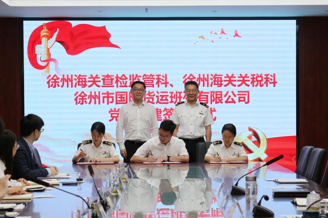聚焦以高质量党建引领中欧班列高质量发展,6月5日下午,徐州海关关税科党支部、查检监管科党支部,徐州市班列公司党支部三方签署党建结对共建协议。徐州海关党委书记、关长吴新华,省班列公司总经理、党委副书记夏晋出席活动并致辞,徐州海关党委委员、机关党委书记、副关长尤兴军主持活动。