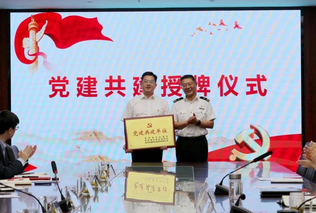 活动上,三方党支部首先分别了介绍各自基本情况和业务发展情况,一致表达了“以共建实现联动发展”的愿景,共同签署了党建结对共建协议。吴新华、夏晋、尤兴军共同见证了签约,并向三方党建共建单位进行了授牌。吴新华向三方共建表示祝贺,对徐州中欧班列服务本地企业表示充分肯定。围绕以党建共建为引领强化业务协同,他指出,一是在提升徐州国际班列整体质效上进一步探索和创新,持续加强政策对接,发挥徐州班列通道优势,深化铁路快速通关模式,持续探索跨境电商新业态,不断强化宣传力度,切实将政策优势转化为经济效益、社会效益和徐州中欧班列社会影响力。二是打造更加符合企业需求的多式联运体系。利用共建联系,通过企业走访等多种形式,将海关通关方面的政策进行普及,形成全方位、多元化、符合企业诉求的物流体系。